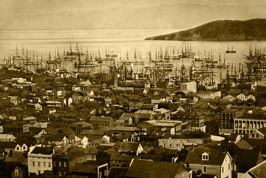 - Uitgelichte foto: de baai van San Francisco rond 1850 – fotograaf onbekend – This image is available from the United States Library of Congress’s Prints and Photographs division under the digital ID cph.3g07421.This tag does not indicate the copyright status of the attached work. A normal copyright tag is still required. See Commons:Licensing., Public Domain, https://commons.wikimedia.org/w/index.php?curid=3661702