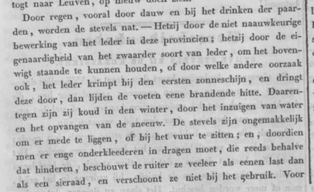 Stijve stevels hebben maar weinig voordelen, en veel nadelen. De schrijver pleit in 1832 voor het afschaffen van de stevels voor de kurassiers. Waar gaat dat nou weer over?