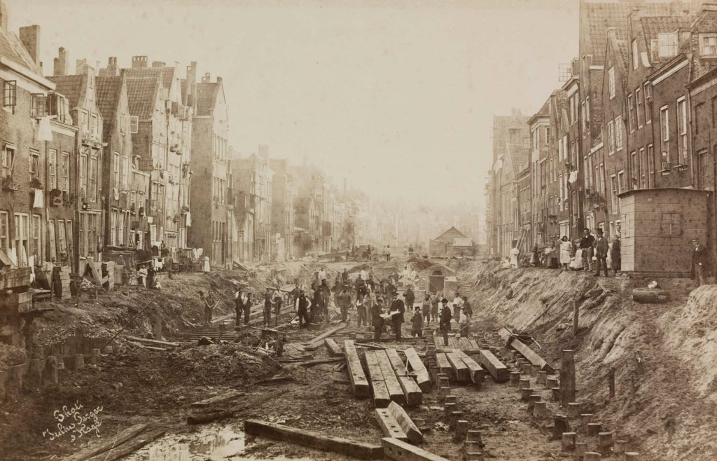 - Foto Rotterdam aanleg luchtspoor Binnen Rotte 1871, collectie Spoorwegen in Beeld van het Spoorwegmuseum. Gevonden in de beelden van Het Geheugen.
